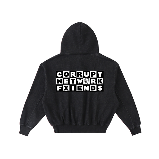"Corrupt Network" Frayed Enzyme Washed Fleece Hoodie