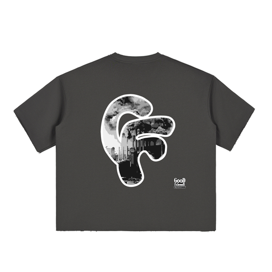 "Global Warming" Boxy Half-Sleeve Raw-Edge T-Shirt